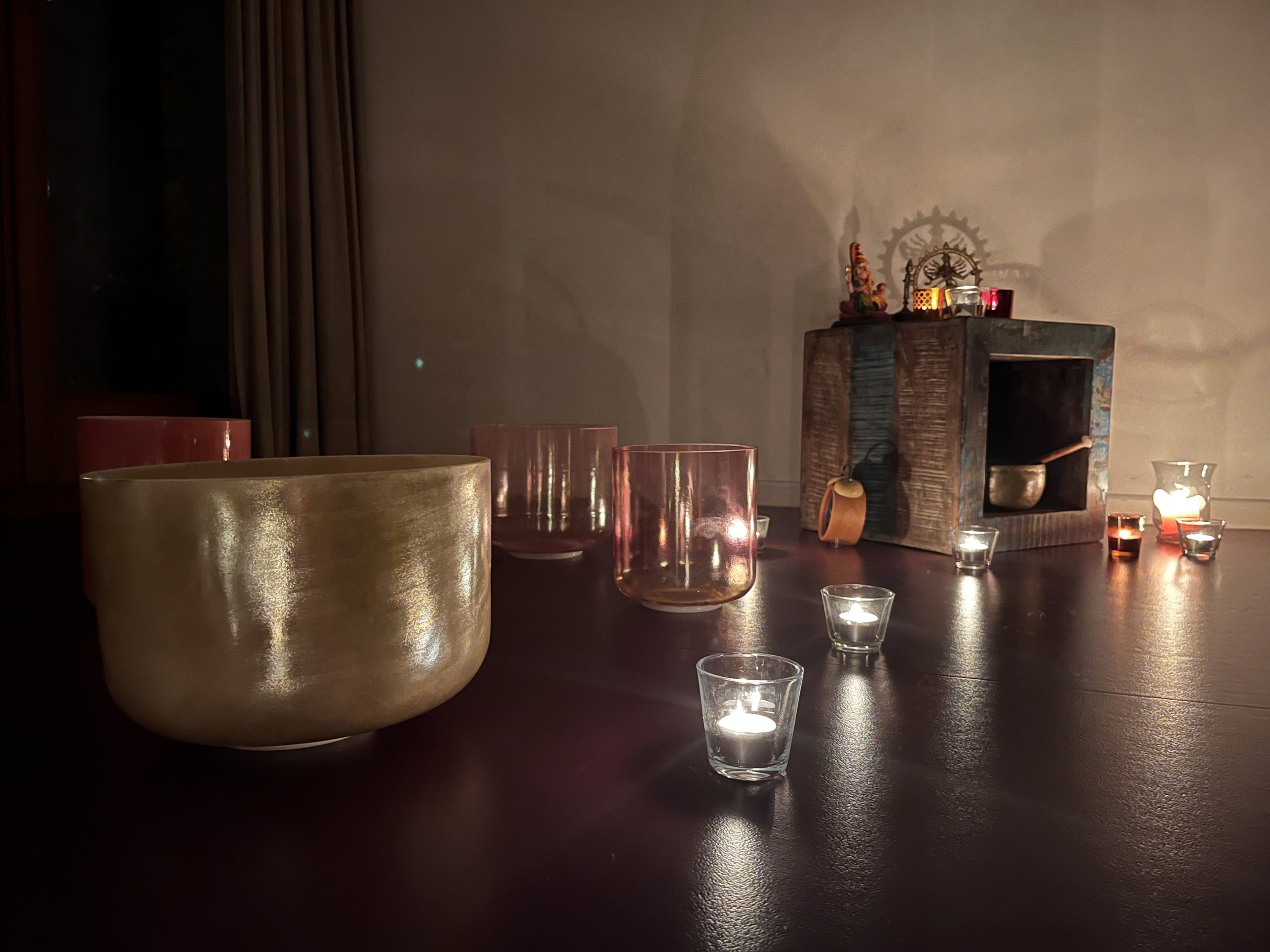 Soma & Sound ist ein neuartiges spannendes Format der achtsamen Körperarbeit mit transformierender Tiefenentspannung im Kristall-Klangbad.